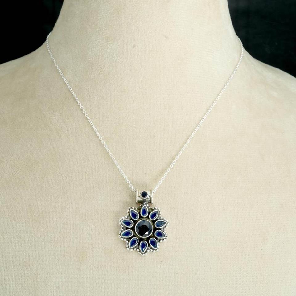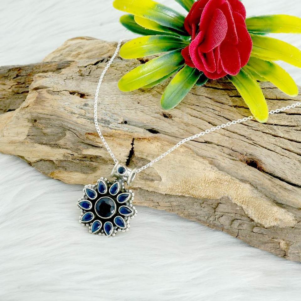 สร้อยคอจี้เงินแท้925ไพลินอัญมณีสีฟ้าของขวัญแต่งงานที่เรียบง่ายสไตล์อินเทรนด์