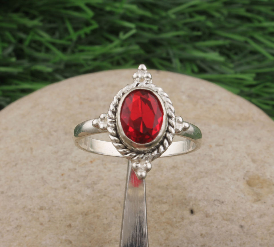 แหวนเงินแท้ 925 ประดับพลอยโกเมนสีแดง ดีไซน์เรียบหรู สำหรับผู้หญิง แหวนแต่งงานคลาสสิก พลอยธรรมชาติ ของขวัญประจำเดือนมกราคม