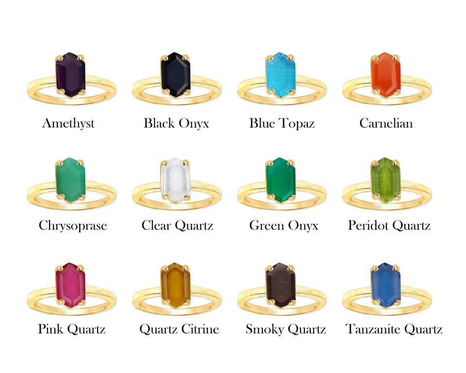 925แหวนเงินสเตอร์ลิงรูปหกเหลี่ยมประดับหินควอตซ์อัญมณีการตั้งค่าวงแหวนตรงเพชร Vermeil เพชรหลักสีทอง