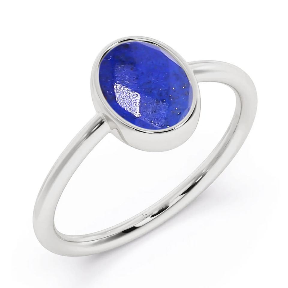 925เงินสเตอร์ลิง10x8มม. แหวนหมั้นเพชร Lapis Lazuli เครื่องประดับต้นฉบับสายรัดวงรีสำหรับปาร์ตี้