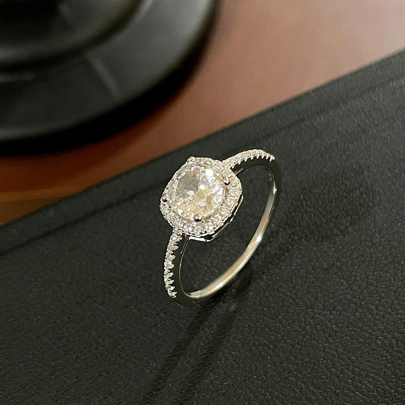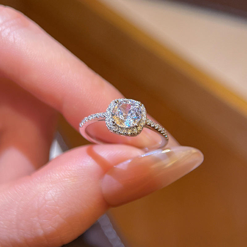 แหวนแต่งงานทรงลูกบาศก์ประดับเพชรซิคอนทรงเหลี่ยมเล็กหรูหรา ชุบโรเดียม เงินแท้ 925 สำหรับผู้หญิง