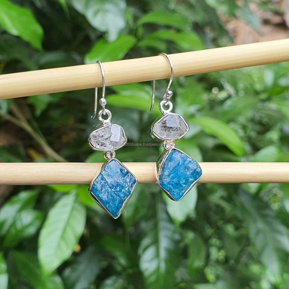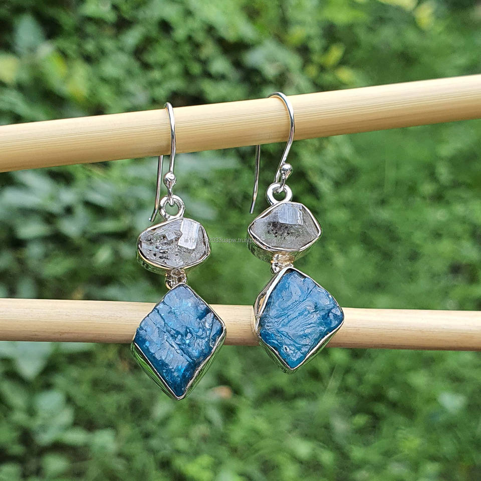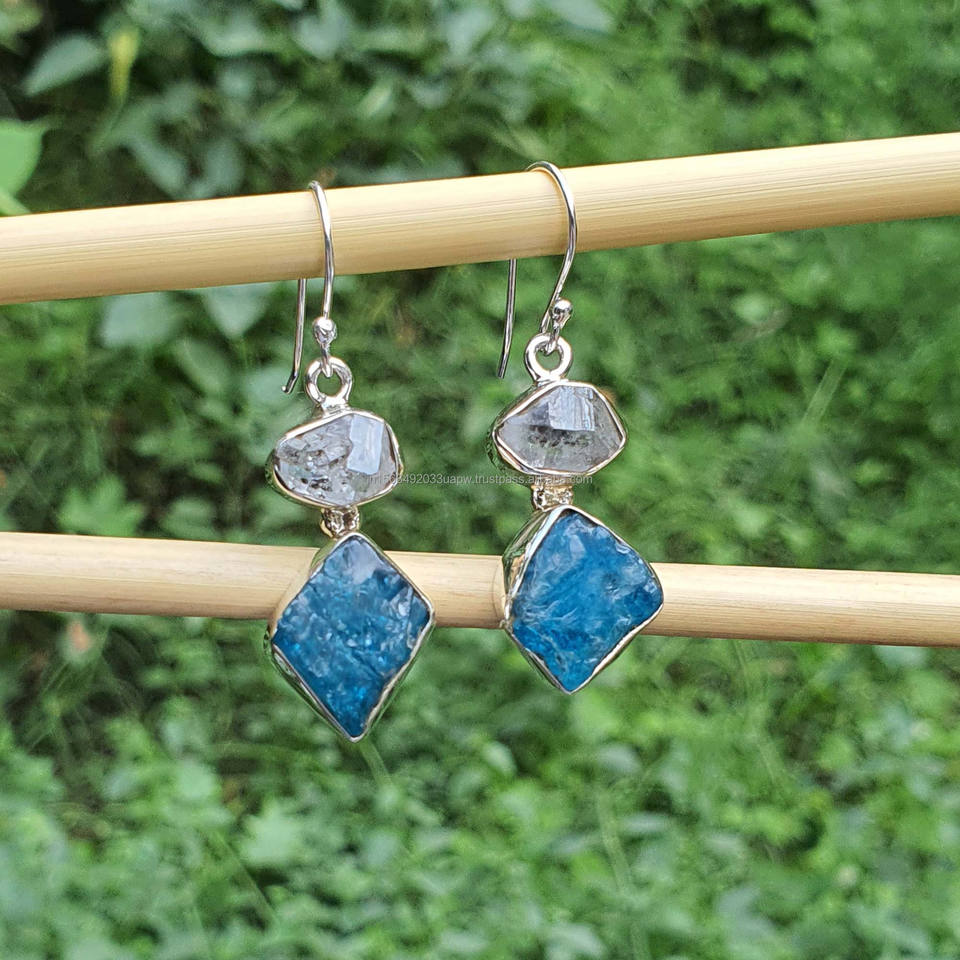 Product Name:Raw Apatite Earrings with Raw Herkimer Diamond 925 Silver Earrings