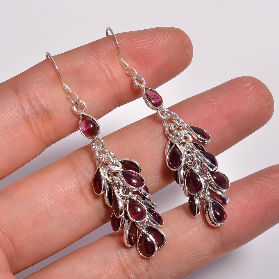 ต่างหู925เงินสเตอร์ลิงพร้อมพลอยโกเมนหรูหราดีไซน์คลาสสิก