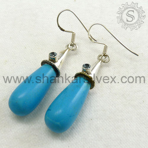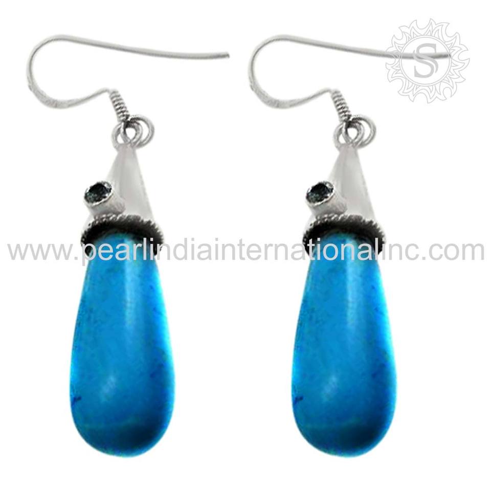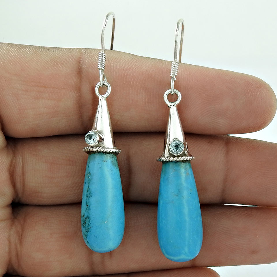 925เงินสเตอร์ลิงประดับเพชรเทียมสีเทอร์ควอยซ์สีฟ้าต่างหูแบบห้อยต่างหูงานแต่งงานหมั้น