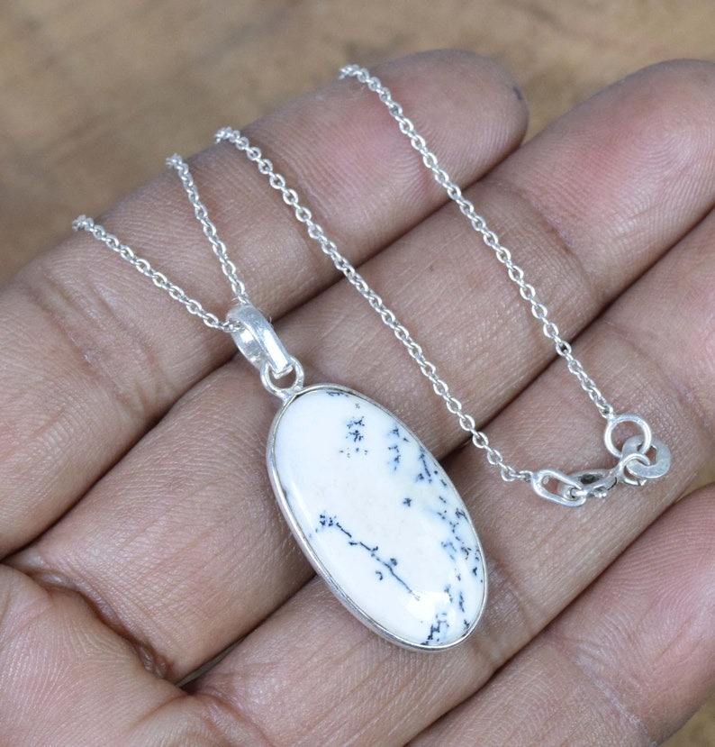 จี้โอปอล dendritie สีเงินสเตอร์ลิง925ชุบทองด้วยแสตมป์925ที่สมบูรณ์แบบเครื่องประดับเป็นของขวัญแต่งงาน