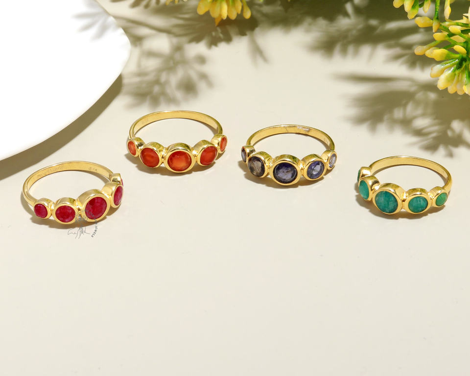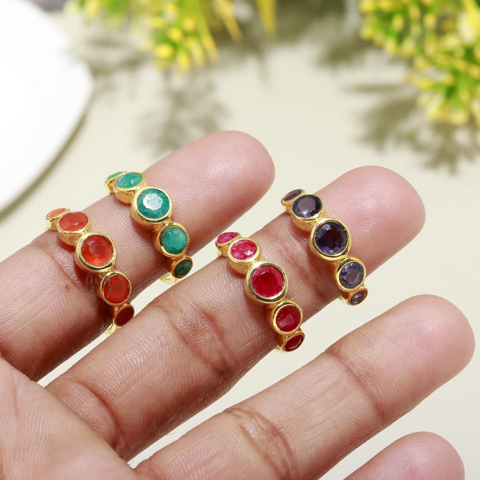 925 Sterling Silver Designer Ring Gold Plated with Mix Gemstone in Round Blue Bezel Setting Inlay for Weddings and Parties