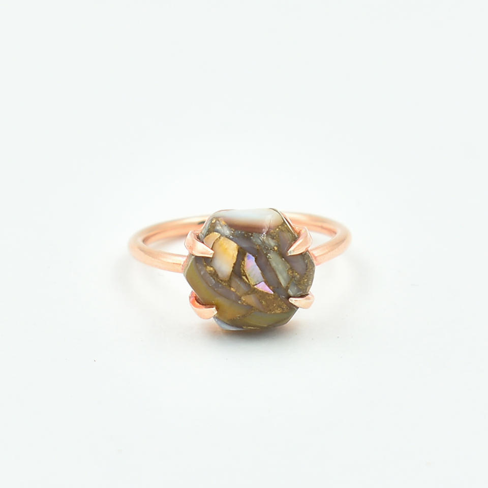 แหวนดีไซเนอร์เงินสเตอร์ลิง925อัญมณีทองแดงเปลือกหอยสีขาวธรรมชาติทำด้วยมือเครื่องประดับกึ่งมีค่าชุบทองกุหลาบ