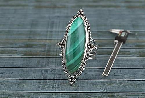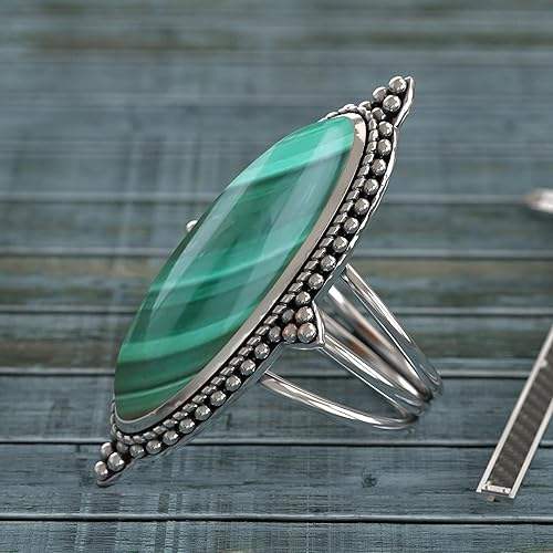 แหวนเงินแท้แฟชั่นสำหรับผู้หญิงและผู้ชายแหวนเพชรมาลาไคต์ทรงรีสำหรับ925