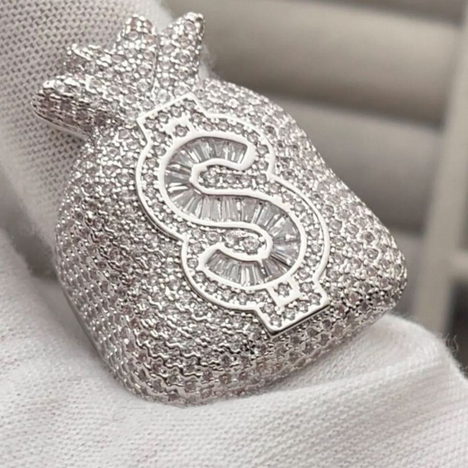 Silver Diamond Dollar Sign HipHop Ring