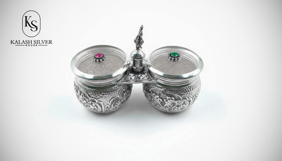ชุดกล่องใส่ผลไม้อบแห้งเงินแท้ 925 พร้อมฝาปิด งานฝีมืออินเดีย กล่องเก็บอัลมอนด์และเม็ดมะม่วงหิมพานต์ ของขวัญพรีเมียม