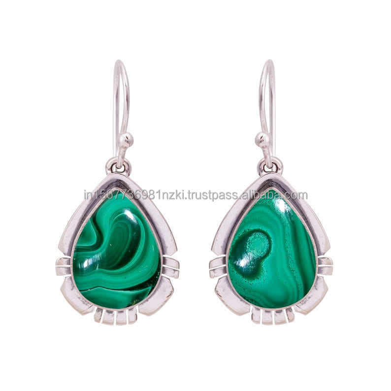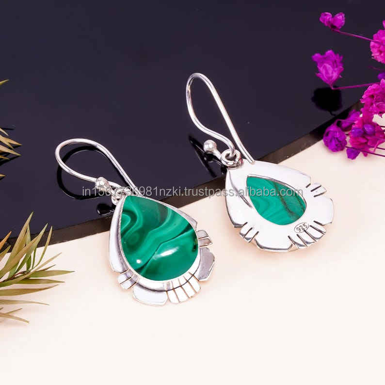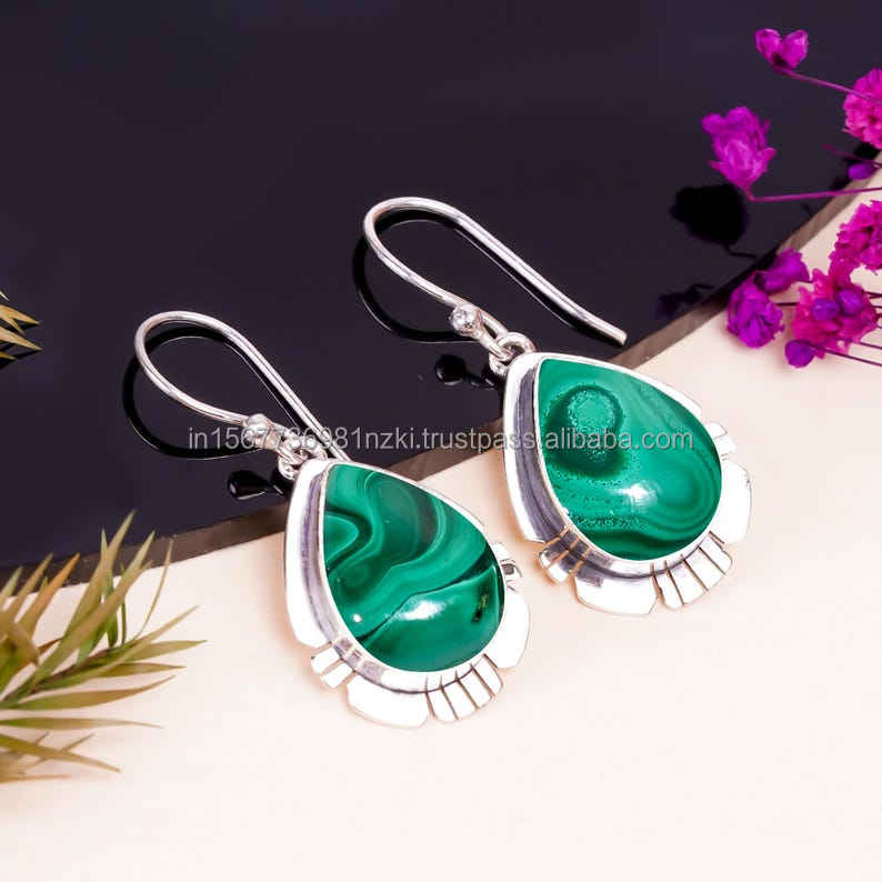 ต่างหูมาลาไคต์925ต่างหูเงินสเตอร์ลิงต่างหูห้อยและหยดน้ำของขวัญมาลาไคต์ธรรมชาติสำหรับแฟนสาวครบรอบ