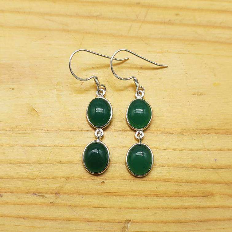 ต่างหูเงินสเตอริ925พร้อมพลอยโอนิกซ์สีเขียวสวยงามสำหรับผู้หญิงผู้หญิงเครื่องประดับเงินอินเดียขายส่งสำหรับงานแต่งงาน