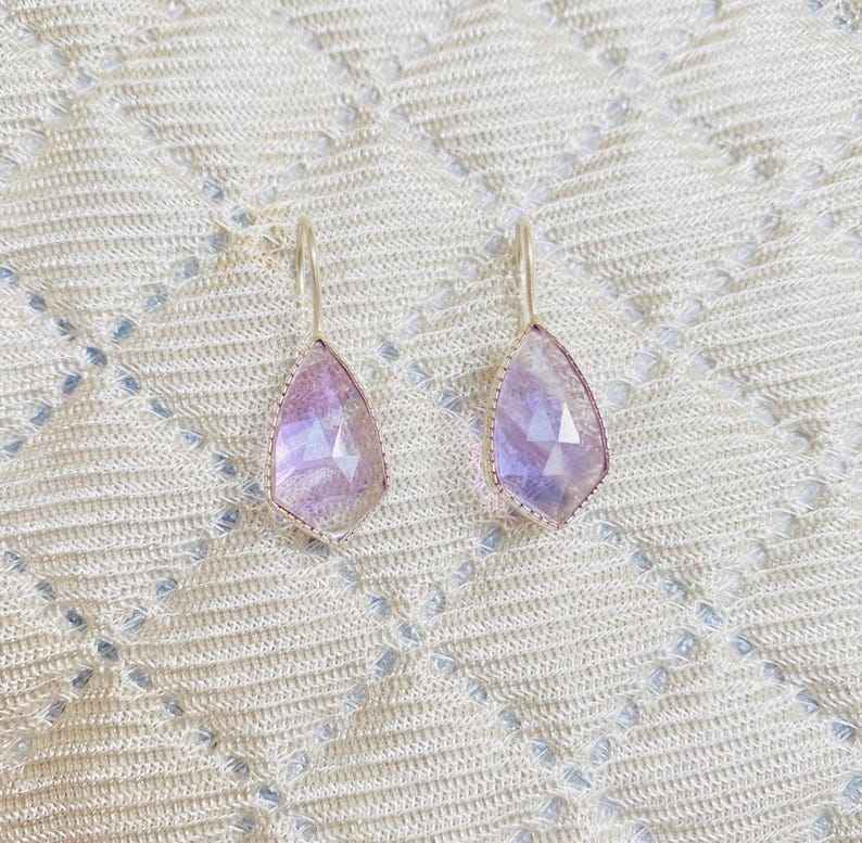 ต่างหูของขวัญสำหรับเจ้าสาวสีเงินสเตอร์ลิงรูปลูกแพร์สีม่วงอเมทิสต์สำหรับผู้หญิงและเด็กผู้หญิง925