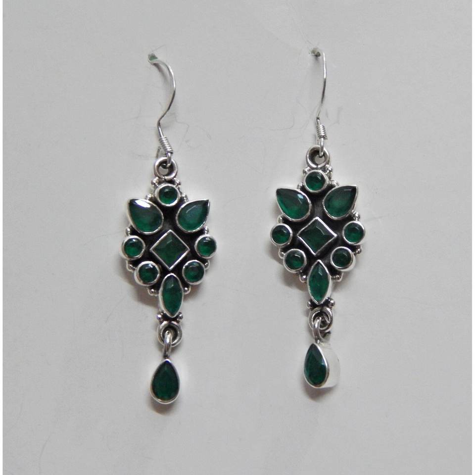 925เงินสเตอร์ลิงต่างหูดอกไม้หรูหราสีเขียวธรรมชาตินิลเครื่องประดับงานแต่งงานที่เรียบง่ายสำหรับเป็นของขวัญ