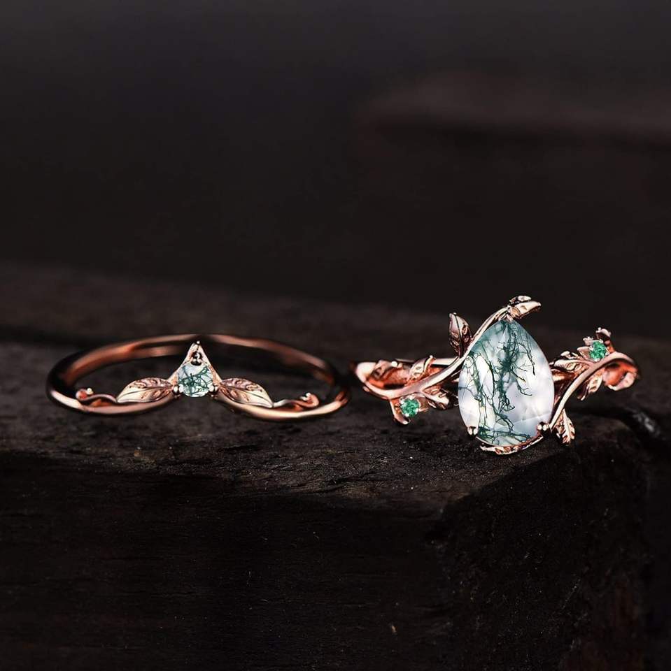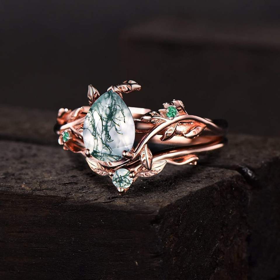 แหวนเงินแท้ 925 ดีไซน์คลาสสิกประดับมอสอาเกตทรงหยดน้ำ 0.8 กะรัต ดีไซน์ใบไม้ สำหรับงานแต่งงานและงานเลี้ยงสำหรับผู้หญิง
