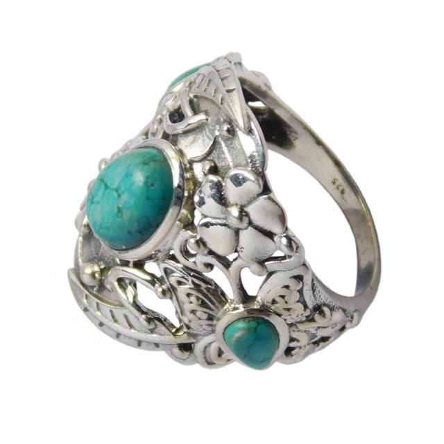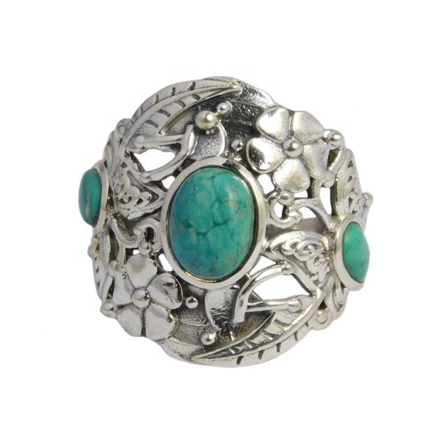 925แหวนเงินสเตอร์ลิงตลอดไปเครื่องประดับหรูหราพลอยสีเทอร์ควอยซ์ธรรมชาติและชุบโรเดียมสำหรับเป็นของขวัญสำหรับทุกคน