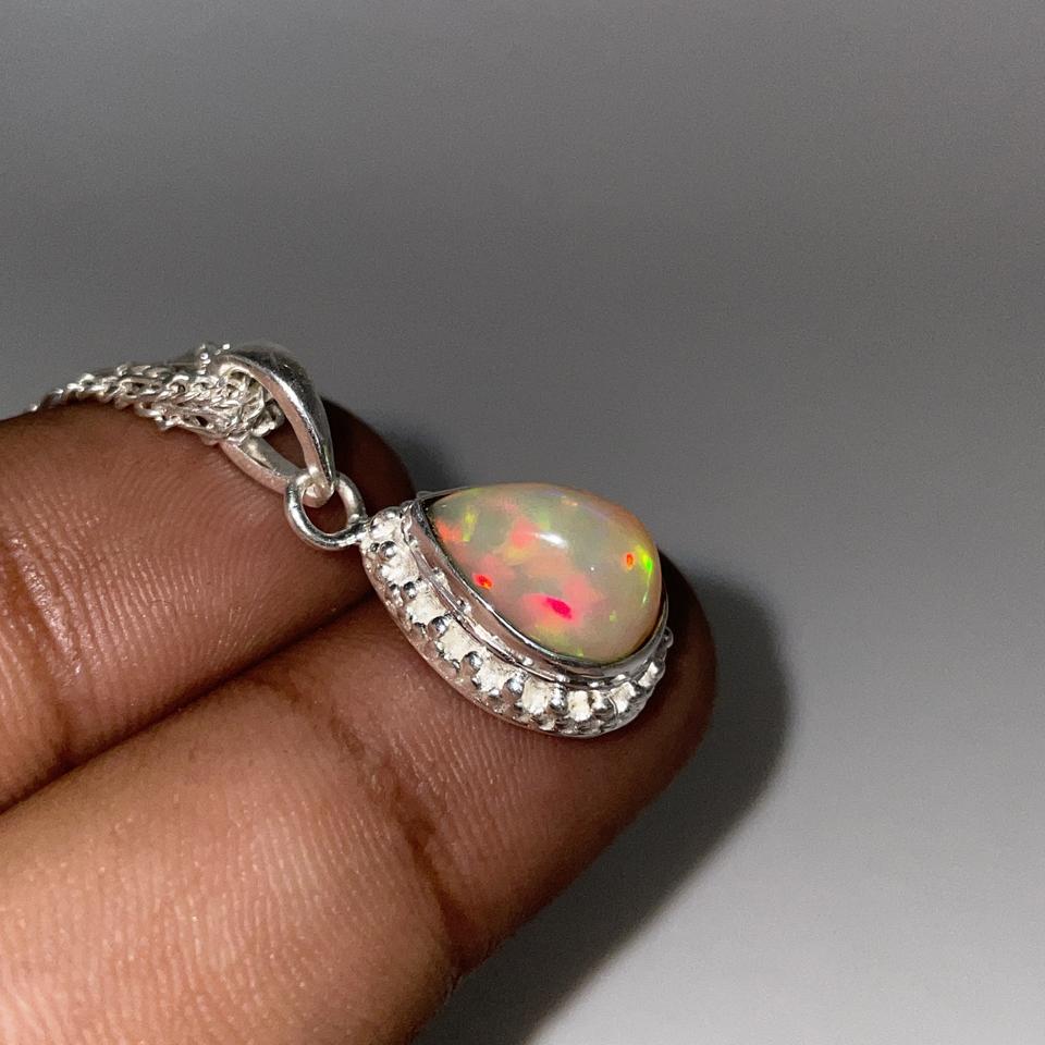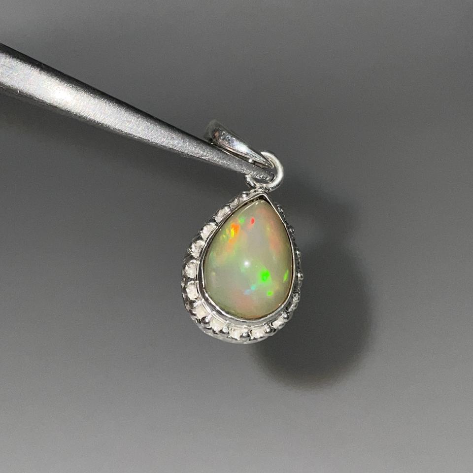 925จี้โอปอลไฟหลากสีเงินแท้สไตล์วินเทจโอปอลสีขาวรูปลูกแพร์สีรุ้งโอปอลสำหรับเด็กโลหะผสม
