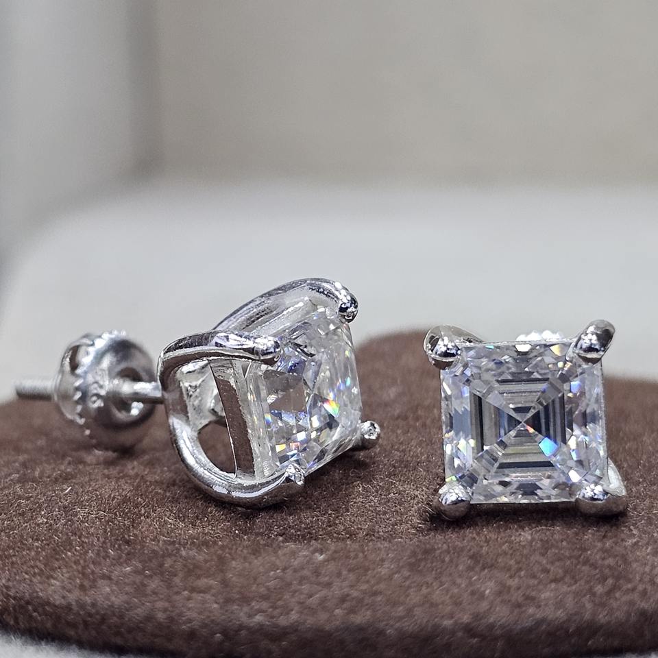 สตั๊ดเจาะอัญมณีเพชรโมอิสทรงกลมตัดสวยงาม925เงินแท้แฮนด์เมดดีไซน์คลาสสิก