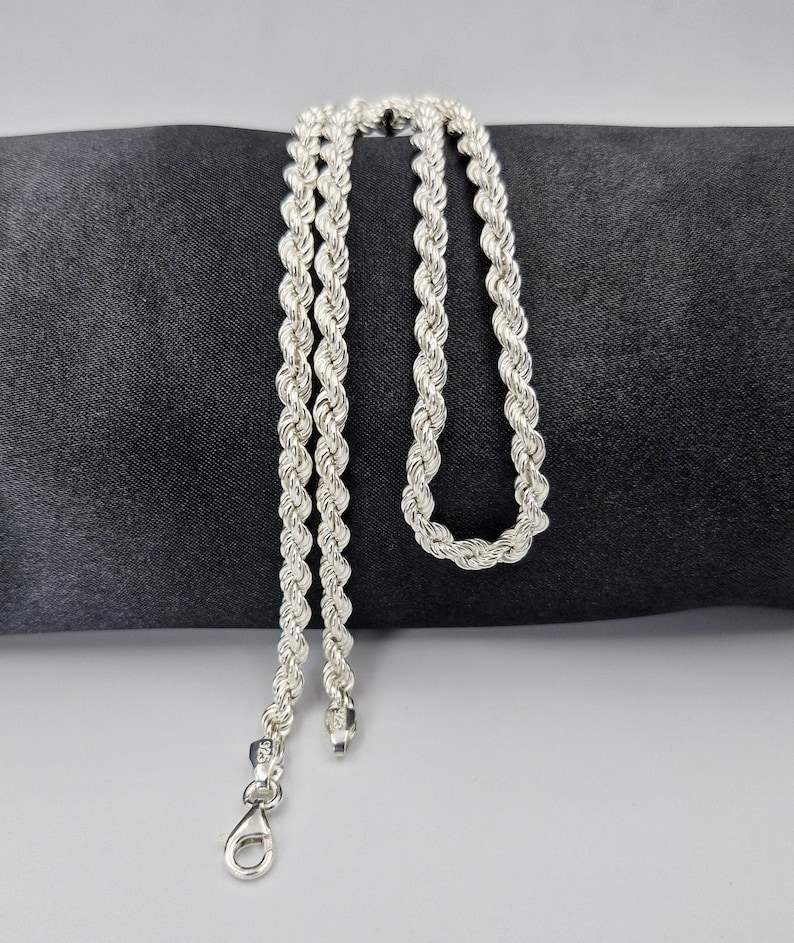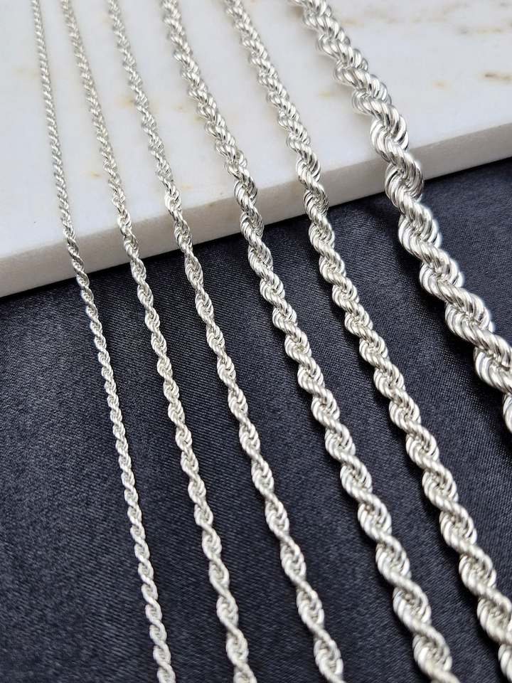 สร้อยเงินแท้ 925 แบบเชือก สำหรับผู้ชายและผู้หญิง งานแฮนด์เมด ดีไซน์ทันสมัย คลาสสิก ปรับขนาดและความยาวได้