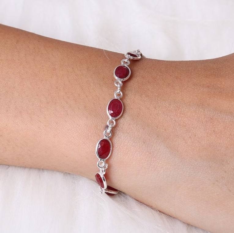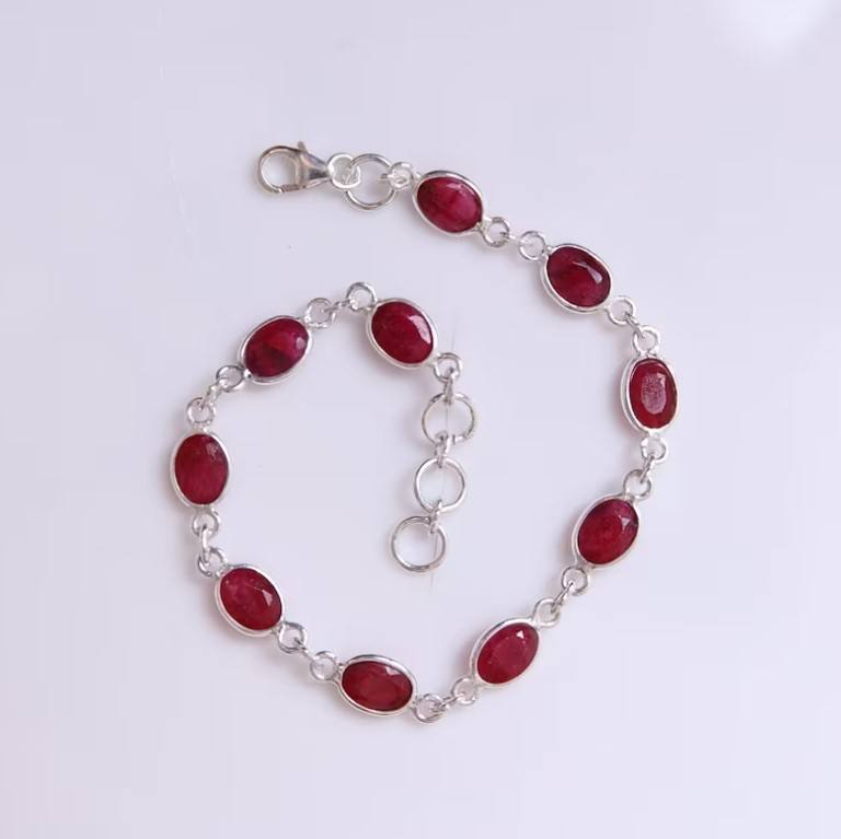 ชื่อผลิตภัณฑ์:สร้อยข้อมือเงินพลอยทับทิมธรรมชาติ