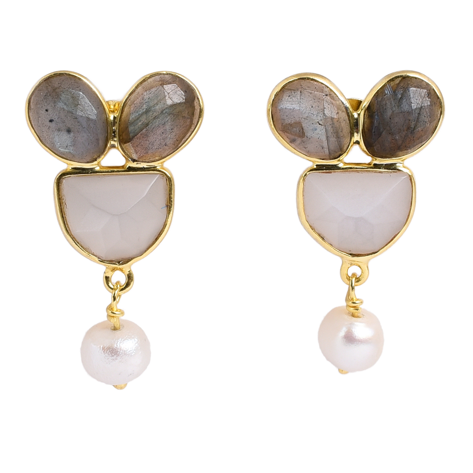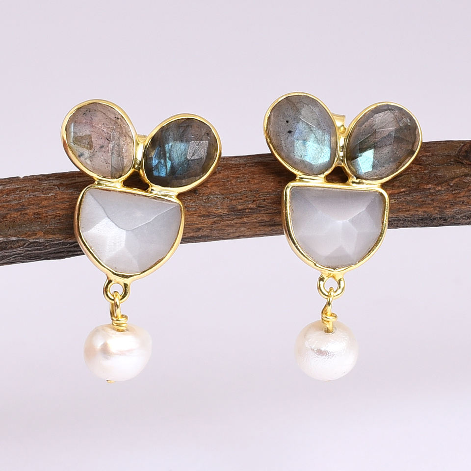 ต่างหูแฟชั่นเงินแท้ 925 พร้อมมูนสโตนสีรุ้ง อัญมณีลาบราดอร์งานแต่งงาน พร้อมมุกหินหลัก