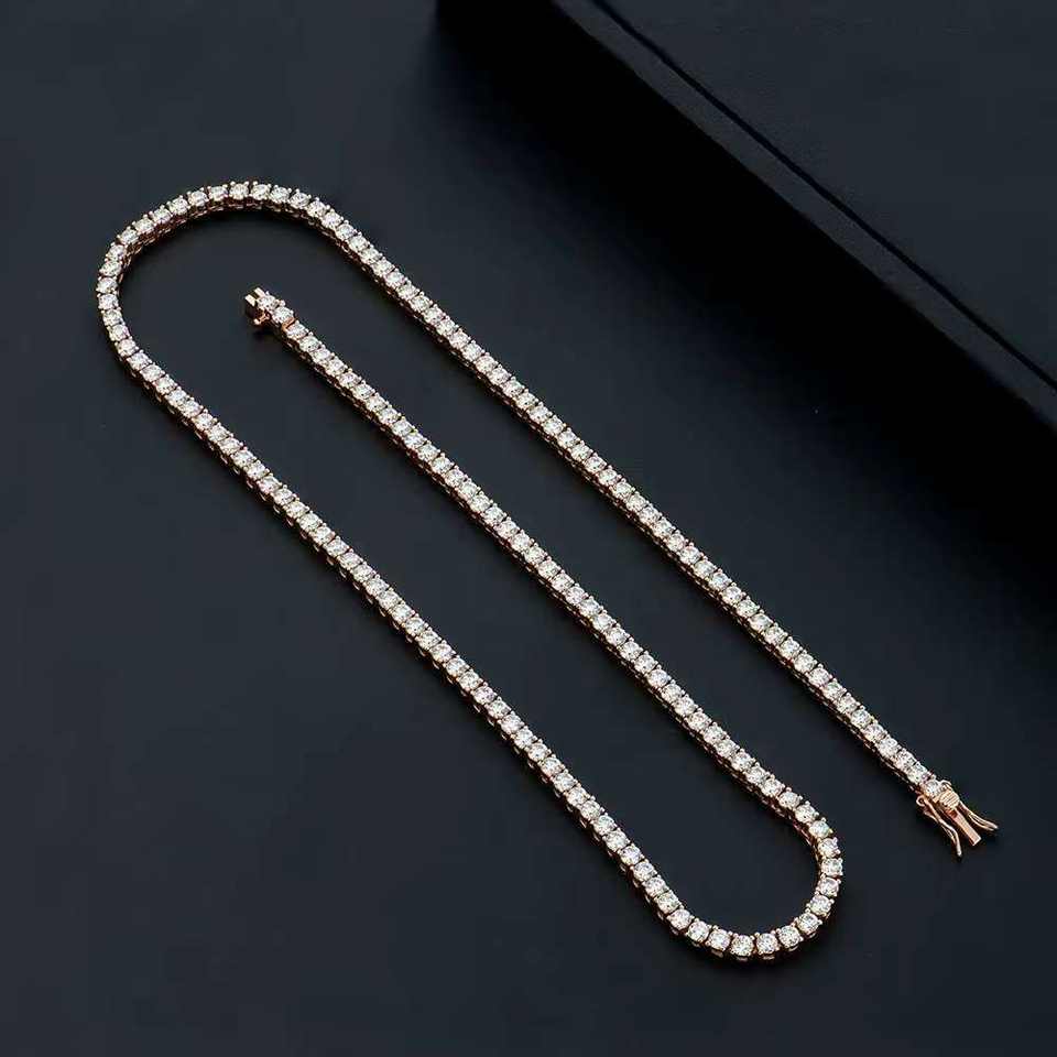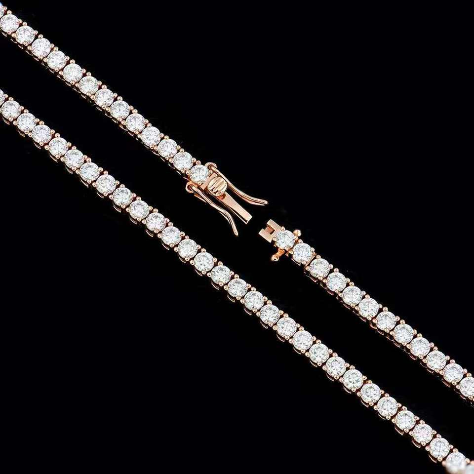 สร้อยคอเทนนิสชุบทองคำสีกุหลาบ ประดับเพชรโมอิสซาไนต์ทรงบริลเลียนต์คัท VVS ขนาด 3 มม. ได้รับการรับรองจาก GRA ทำจากเงินแท้ 925 ดีไซน์แฟชั่นฮิปฮอป