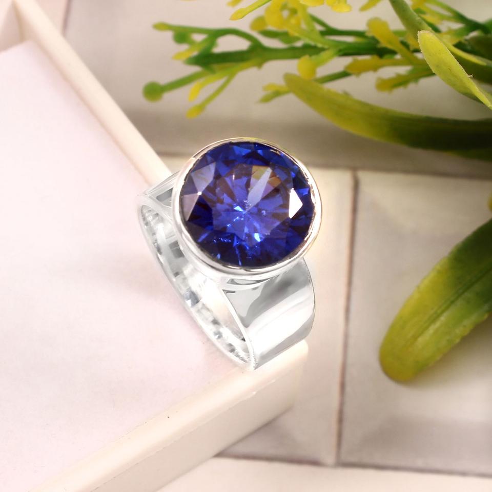 แหวนผู้หญิงประดับพลอยเทียมสีฟ้าและสีเงินสเตอริง925แหวนแต่งงานสไตล์โบฮีเมียนไร้นิกเกิล