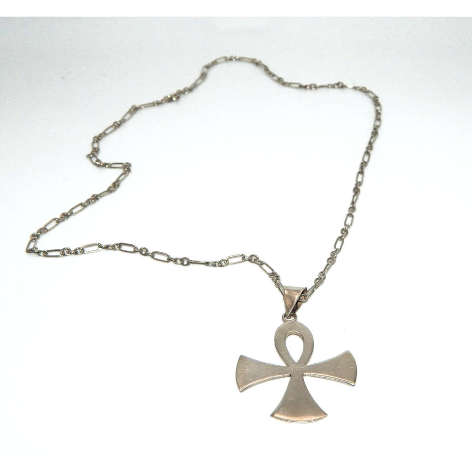 .925 Sterling Silver Figaro Chain with Ankh pendant