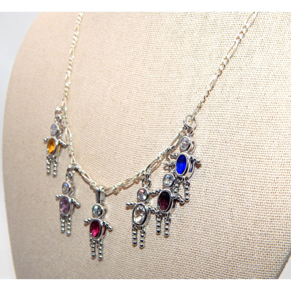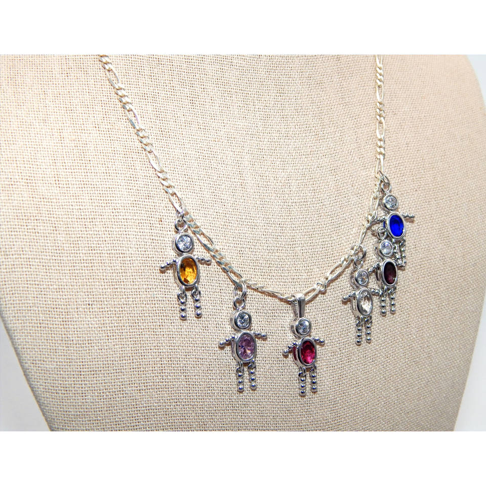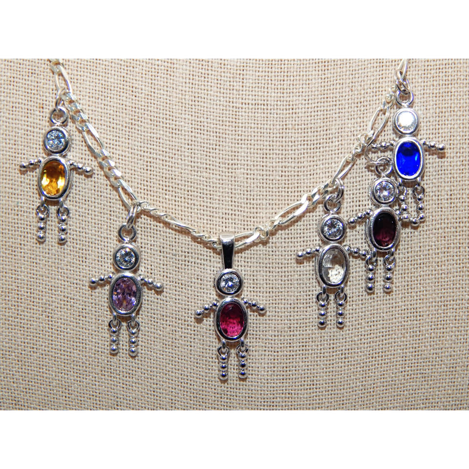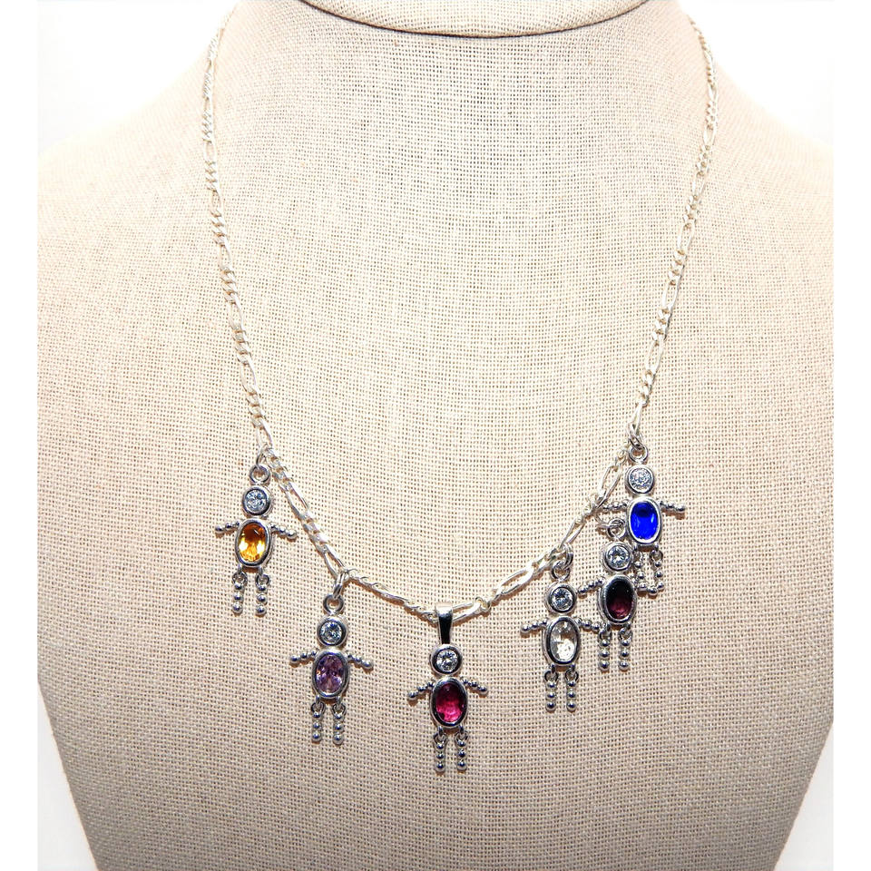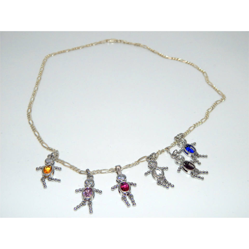 . 925 Sterling Silver Figaro chain neccling w/6 Birthstone Children Charms