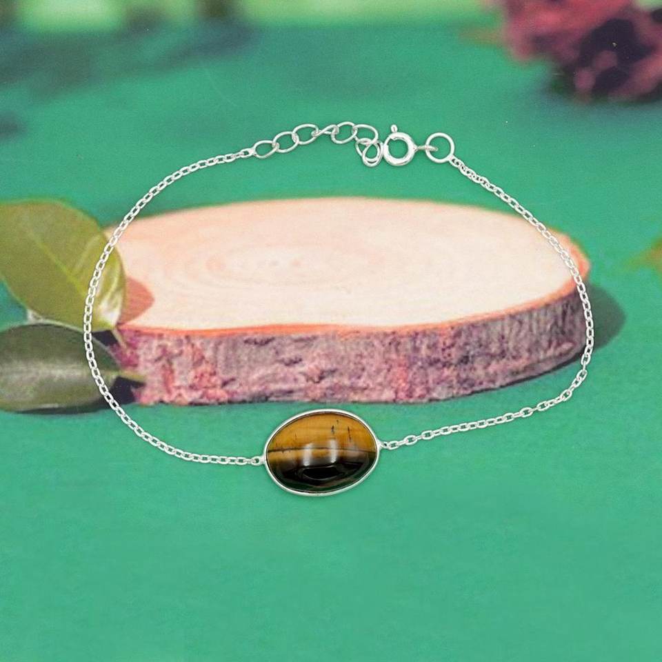 สร้อยข้อมือนำโชคทำด้วยมือสีเงินสเตอร์ลิงทำด้วยมือดีไซน์เรียบง่ายพร้อมพลอยอัญมณีรูปวงรีของขวัญแต่งงานสำหรับเธอ