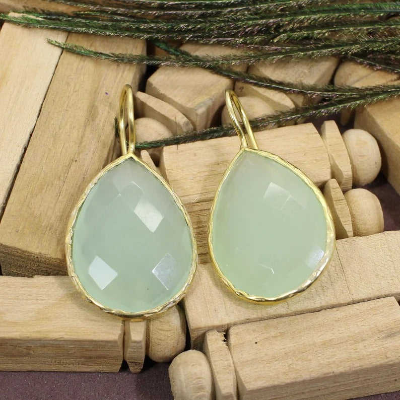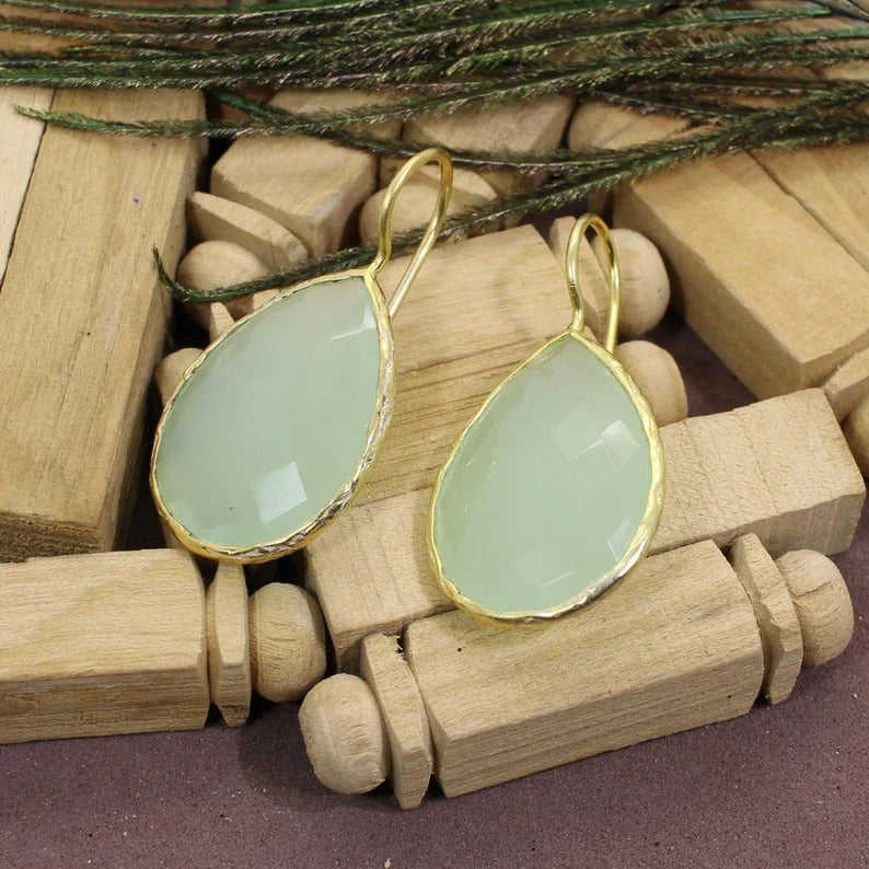 ต่างหูเงินแท้925พร้อมหินโมรา prehnite