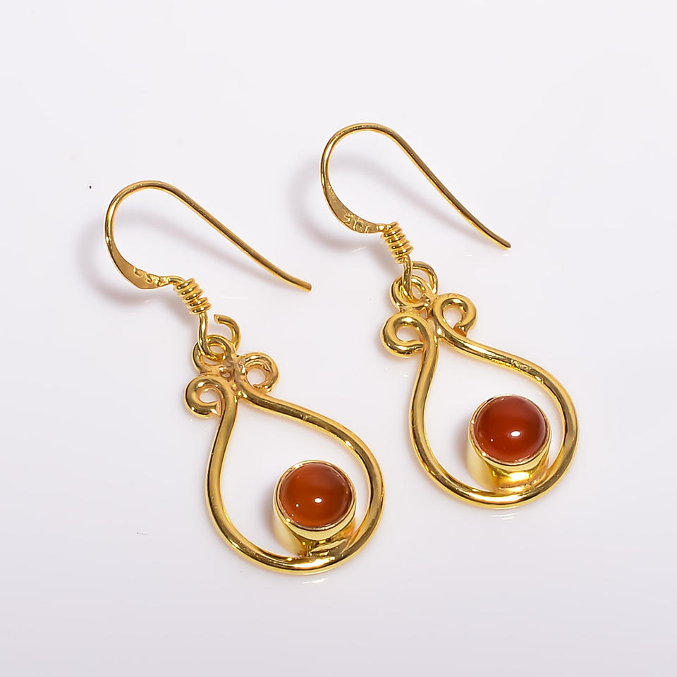 925ต่างหูเงินสเตอร์ลิงแบบห้อยอัญมณีคาร์เนเลียนชุบทองสไตล์คลาสสิกสำหรับผู้หญิง/ครบรอบเพศ
