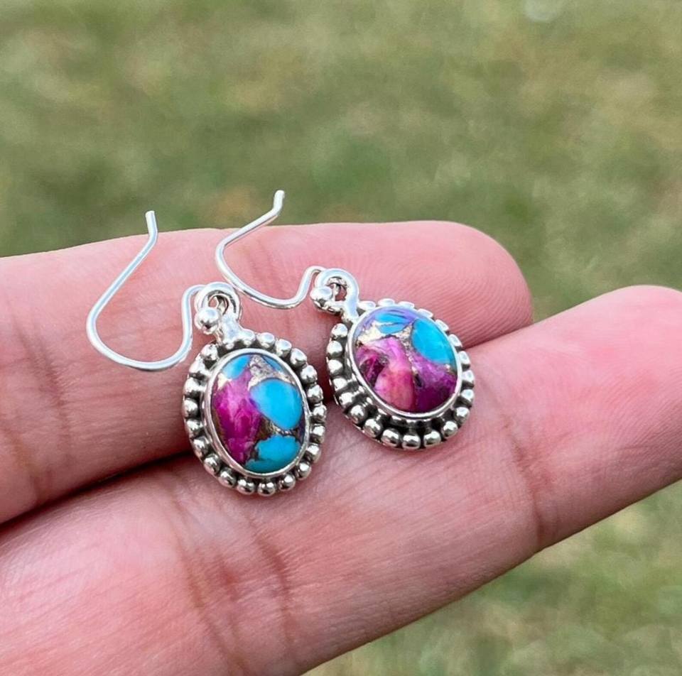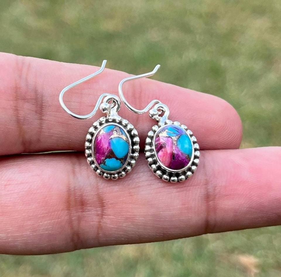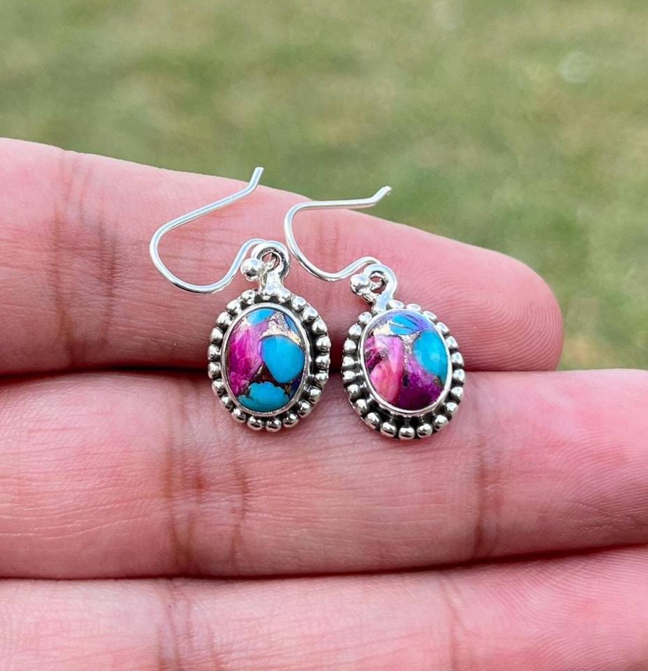 925ต่างหูเงินสเตอร์ลิงแบบห้อยอัญมณีสีเขียวขุ่นหอยนางรมทองแดงทรงวงรีตัดเป็นชิ้นสำหรับการหมั้นหรือของขวัญครบรอบ