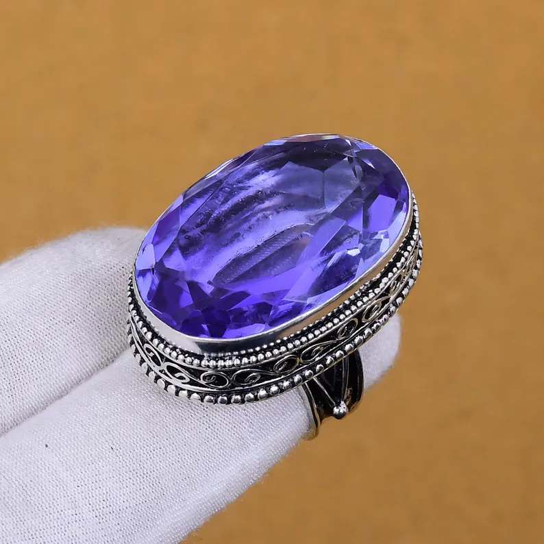 925สเตอร์ลิงเงินคุณภาพดีดีไซน์ละเอียดอ่อนเครื่องประดับอัญมณีคริสตัลบำบัดแหวนไอโอไลต์ธรรมชาติซัพพลายเออร์ขายส่ง