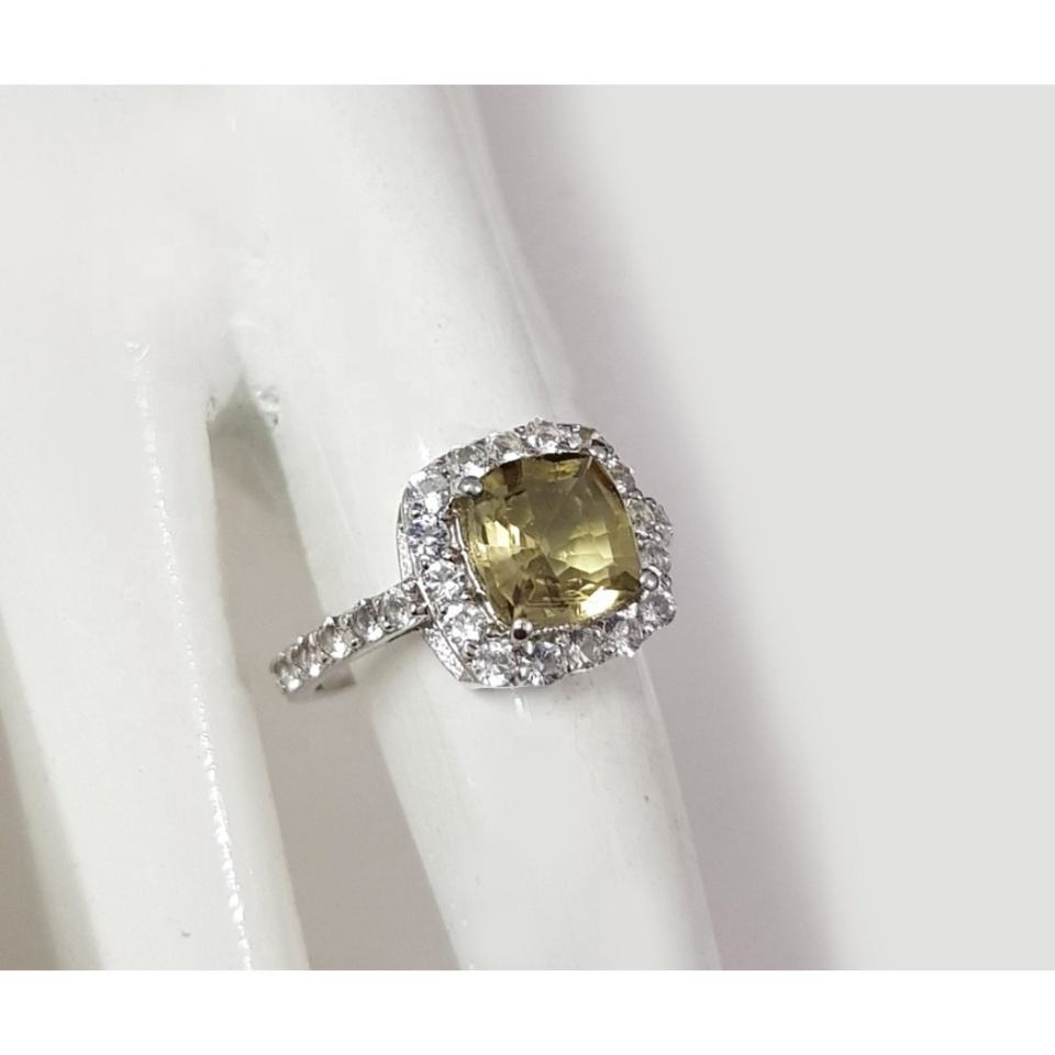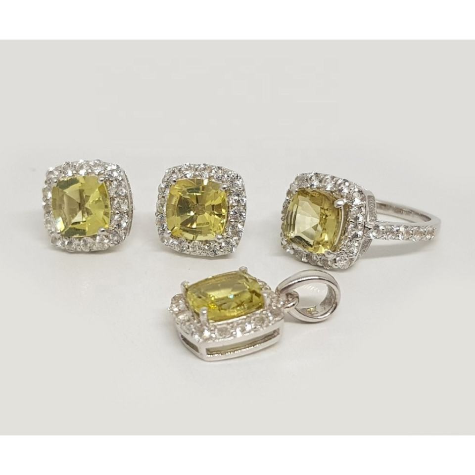 ชุดเครื่องประดับคุณภาพดีสีเงินสเตอร์ลิง925สำหรับผู้หญิงเลมอนควอตซ์ธรรมชาติขนาด8x6มม. พลอยตัดรูปวงรีอินเดียตรงสำหรับการหมั้น