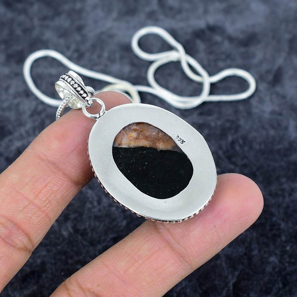 925จี้สร้อยคอเงินสเตอร์ลิงประดับด้วยพลอยอาเกตทรงรีรากปาล์มสไตล์อินเทรนด์สำหรับผู้ชายผู้หญิงสำหรับงานหมั้น