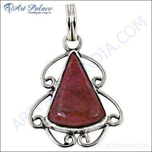 จี้925เงินสเตอร์ลิงประดับพลอยสไตล์ฮิปฮอปโรโดโครไซต์สามเหลี่ยมพลังงานพลอยสเน่ห์หลัก