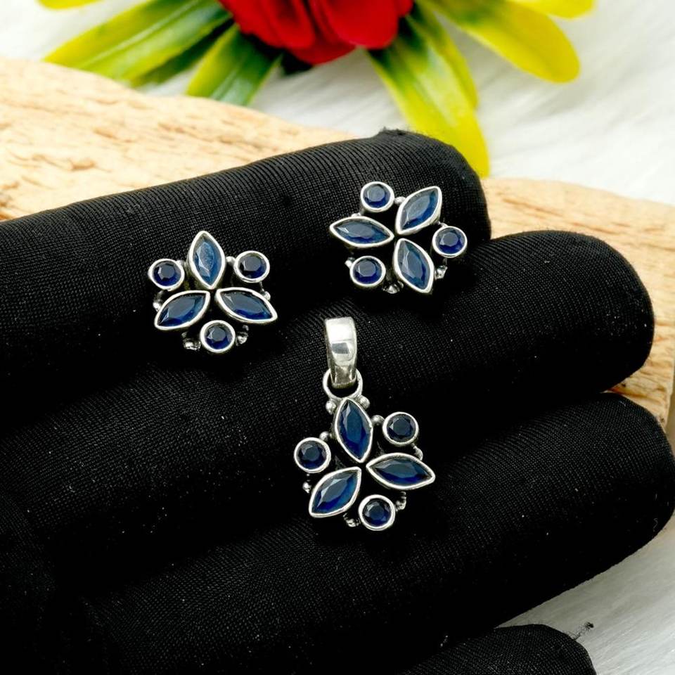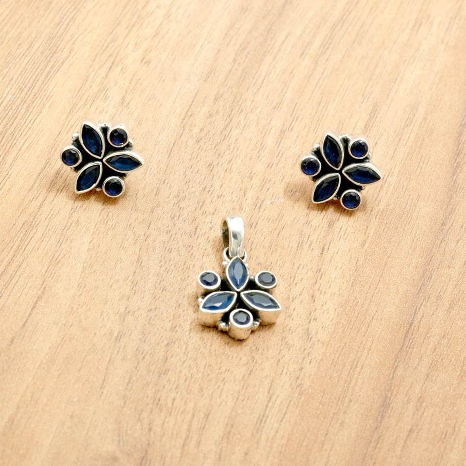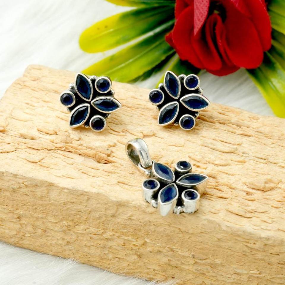 925 Sterling Silver Fine Pendants Charms Set Natural Blue Sapphire Gemstone Earring Pendant Genuine Stone Genuine Gemstone