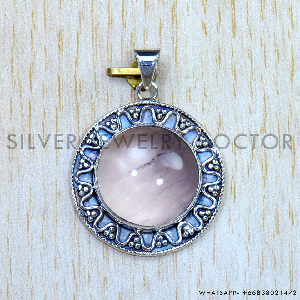 จี้เงินแท้ 925 ประดับโรสควอตซ์ ขายส่งเครื่องประดับจำนวนมาก ของขวัญที่สมบูรณ์แบบสำหรับเธอ