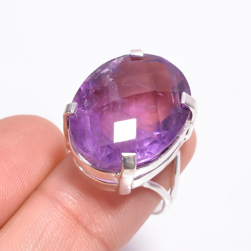 แหวนพลอยอเมทิสต์สีเงินสเตอร์ลิง925อัญมณีสีม่วงสวยสง่างามเครื่องประดับคุณภาพสูงเหมาะสำหรับงานหมั้นของขวัญปาร์ตี้