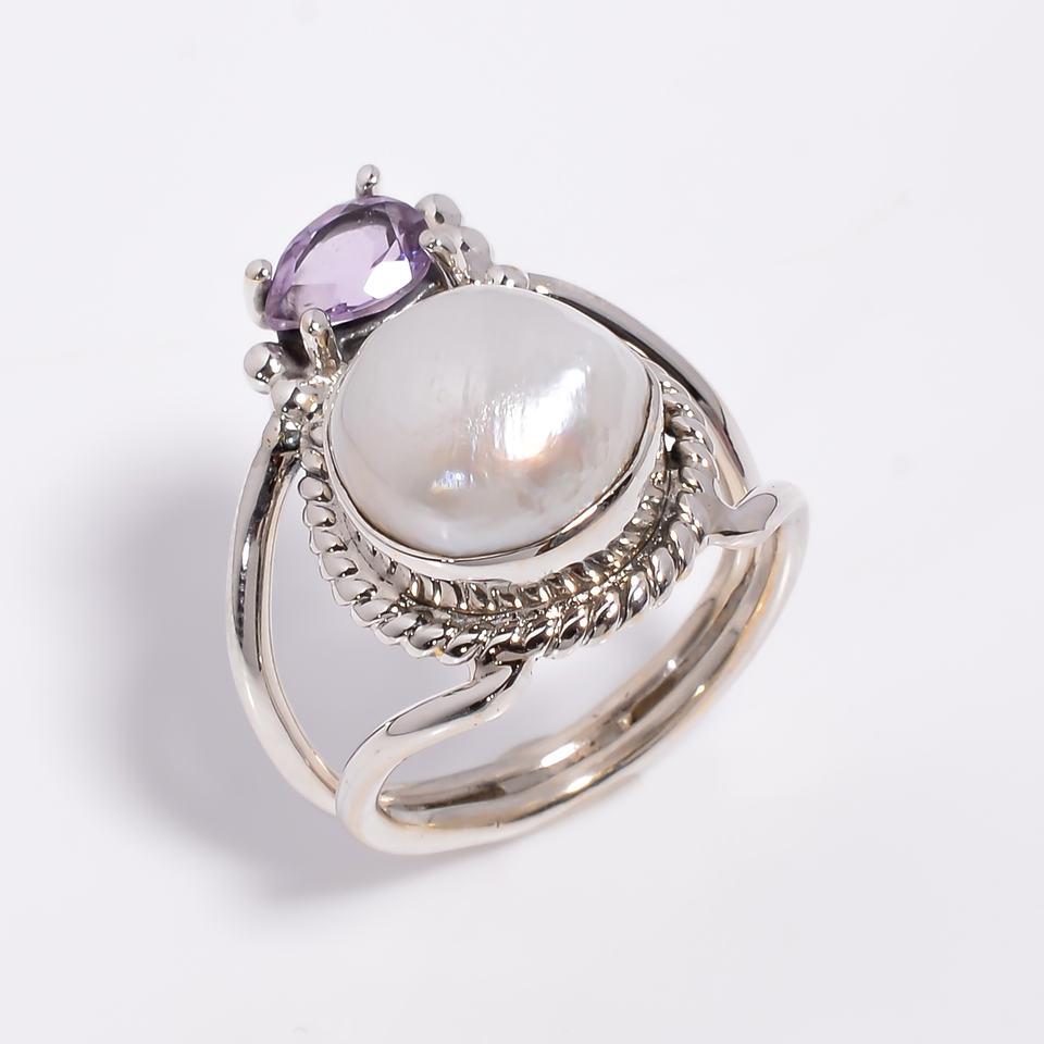925แหวนเงินสเตอร์ลิงสำหรับผู้หญิงดีไซน์โดดเด่นไข่มุกอเมทิสต์บาร็อคธรรมชาติเครื่องประดับแฟชั่นสำหรับวันครบรอบ