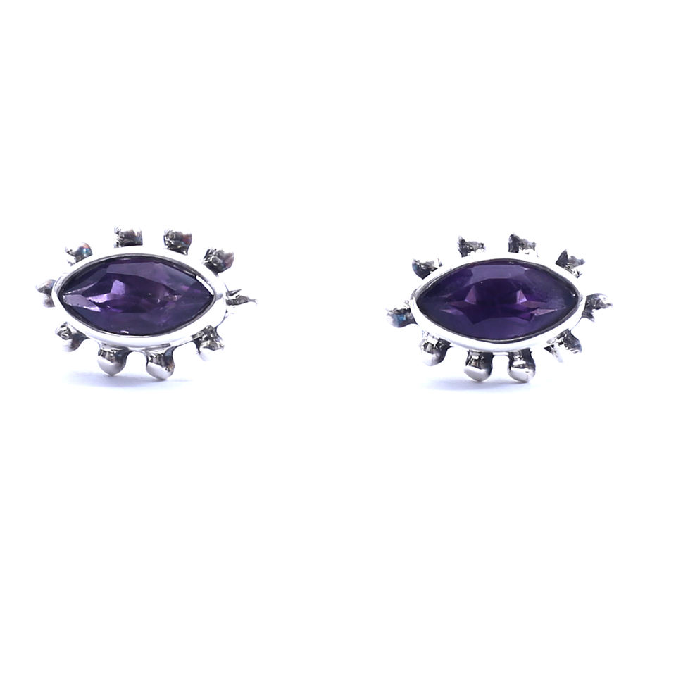 ต่างหูเงินแท้ 925 ประดับพลอยอะมีทิสต์ทรงมาร์ควิสคุณภาพสูง ดีไซน์คลาสสิก เหมาะสำหรับงานปาร์ตี้และวันครบรอบ