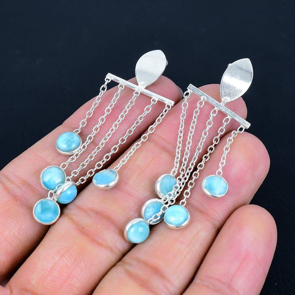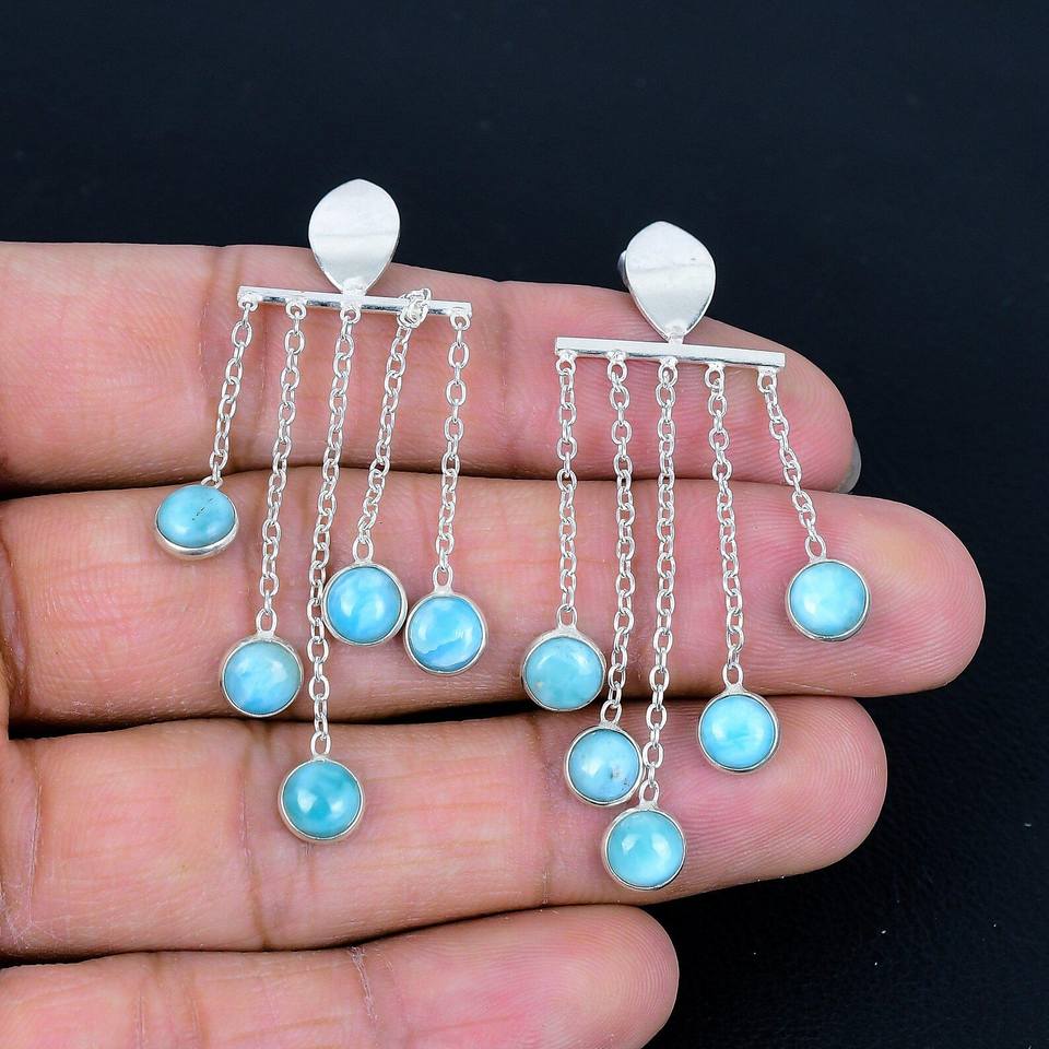 ต่างหูเม็ดกลมเงินแท้925พร้อมเครื่องประดับแฮนด์เมดพลอยลาริมาร์คุณภาพสูงสำหรับวันครบรอบและปาร์ตี้