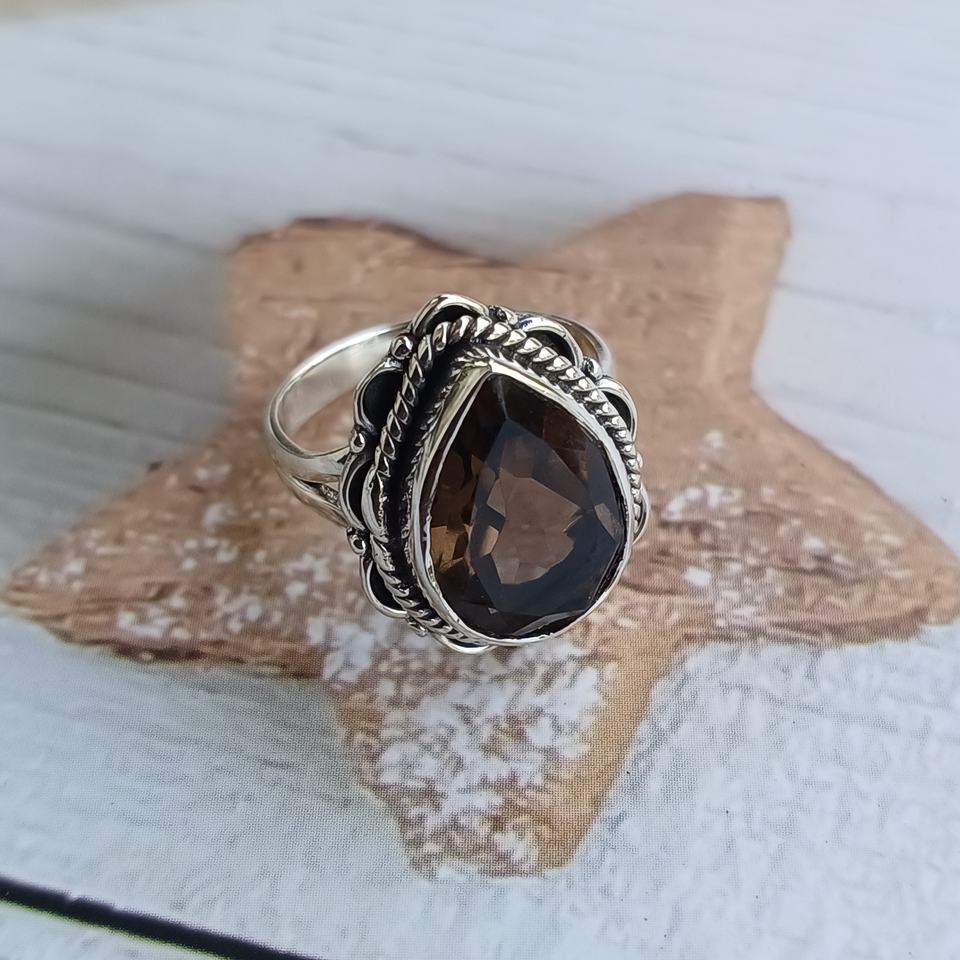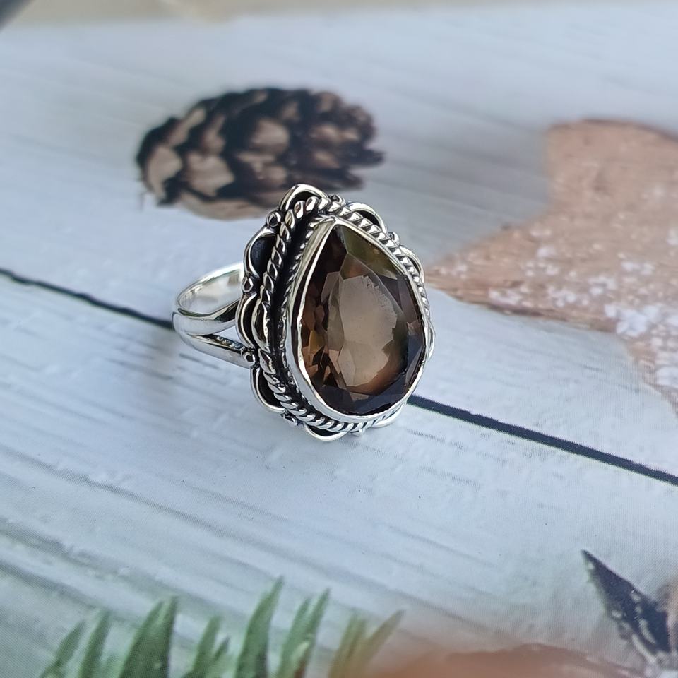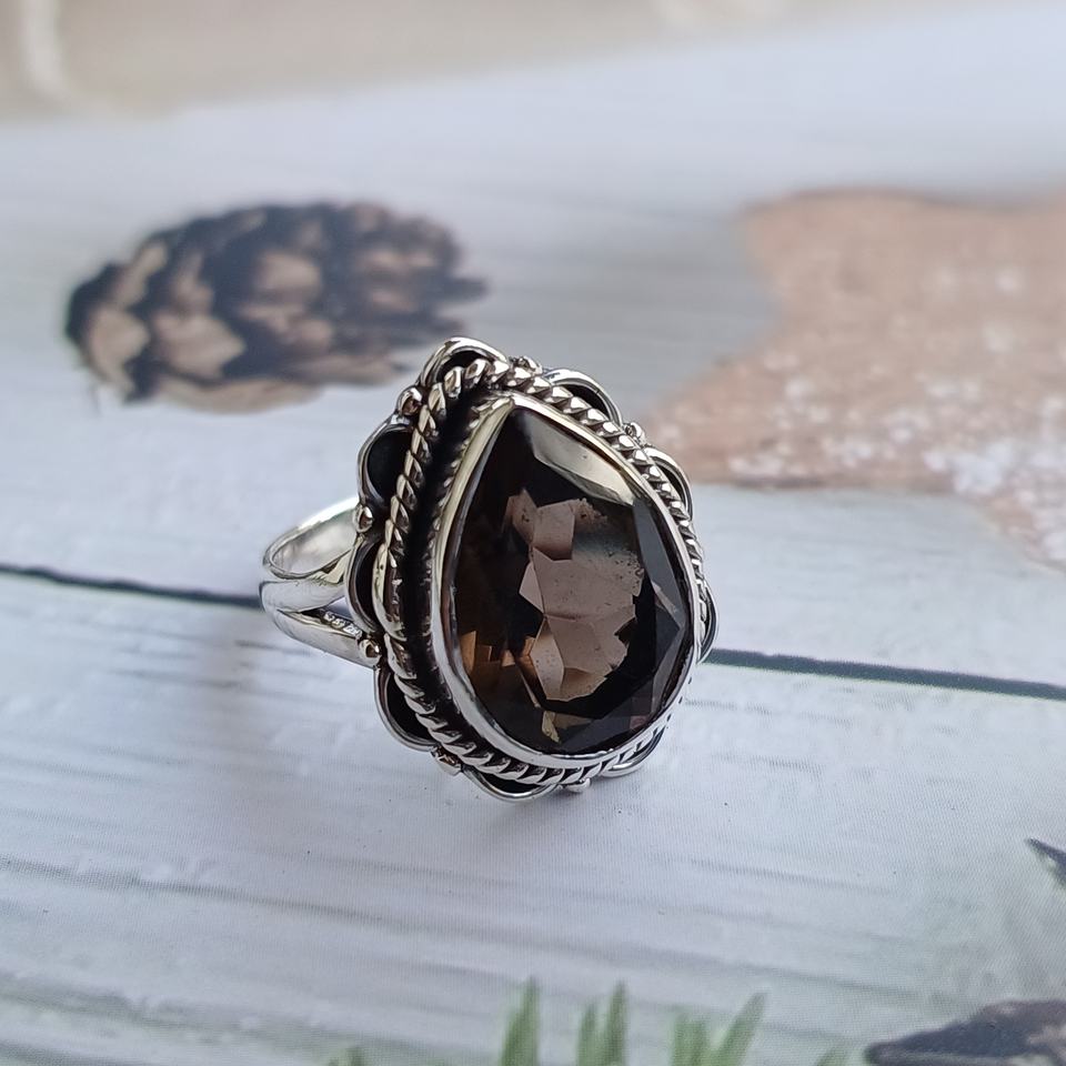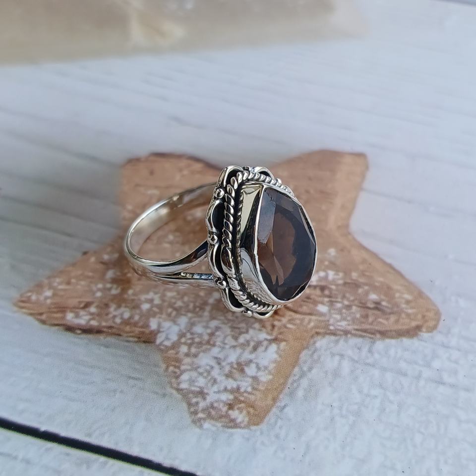 925แหวนเงินสเตอร์ลิงพร้อมพลอยควอตซ์สโมคกี้ธรรมชาติเครื่องประดับวินเทจคลาสสิกสำหรับวันครบรอบแต่งงานและงานปาร์ตี้