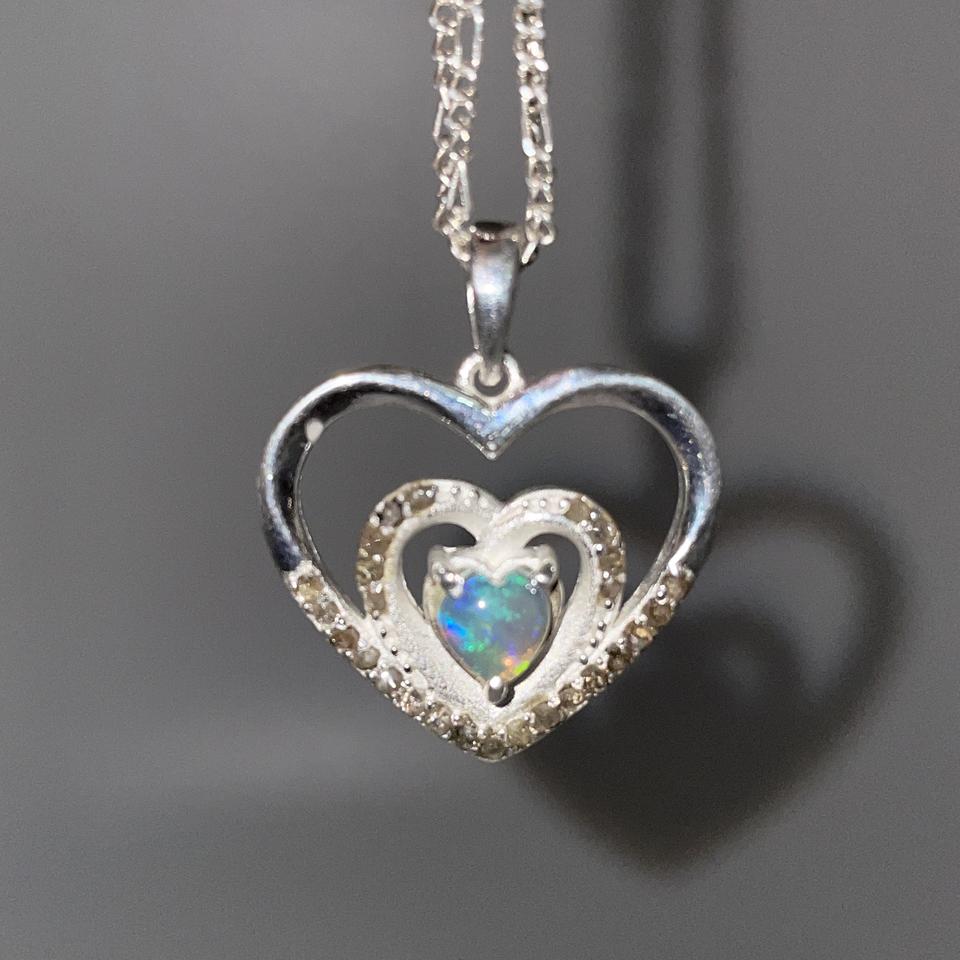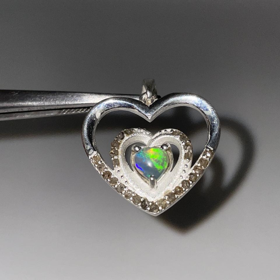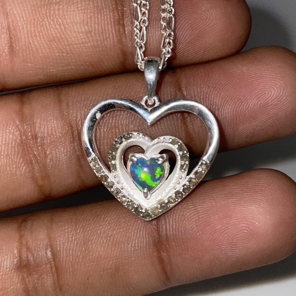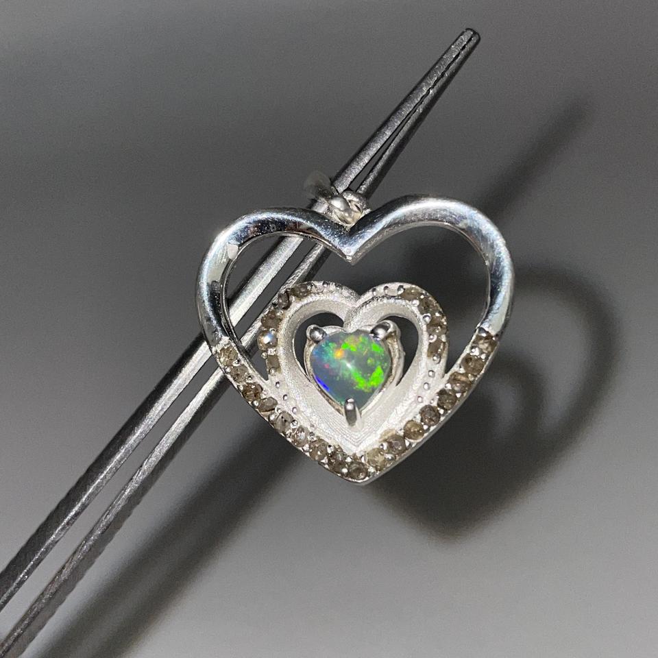 จี้หัวใจเพชรโอปอลสีเงินสเตอร์ลิง925ทันสมัยทำจากสแตนเลสอัญมณีโอปอลเอธิโอเปียธรรมชาติสำหรับปาร์ตี้