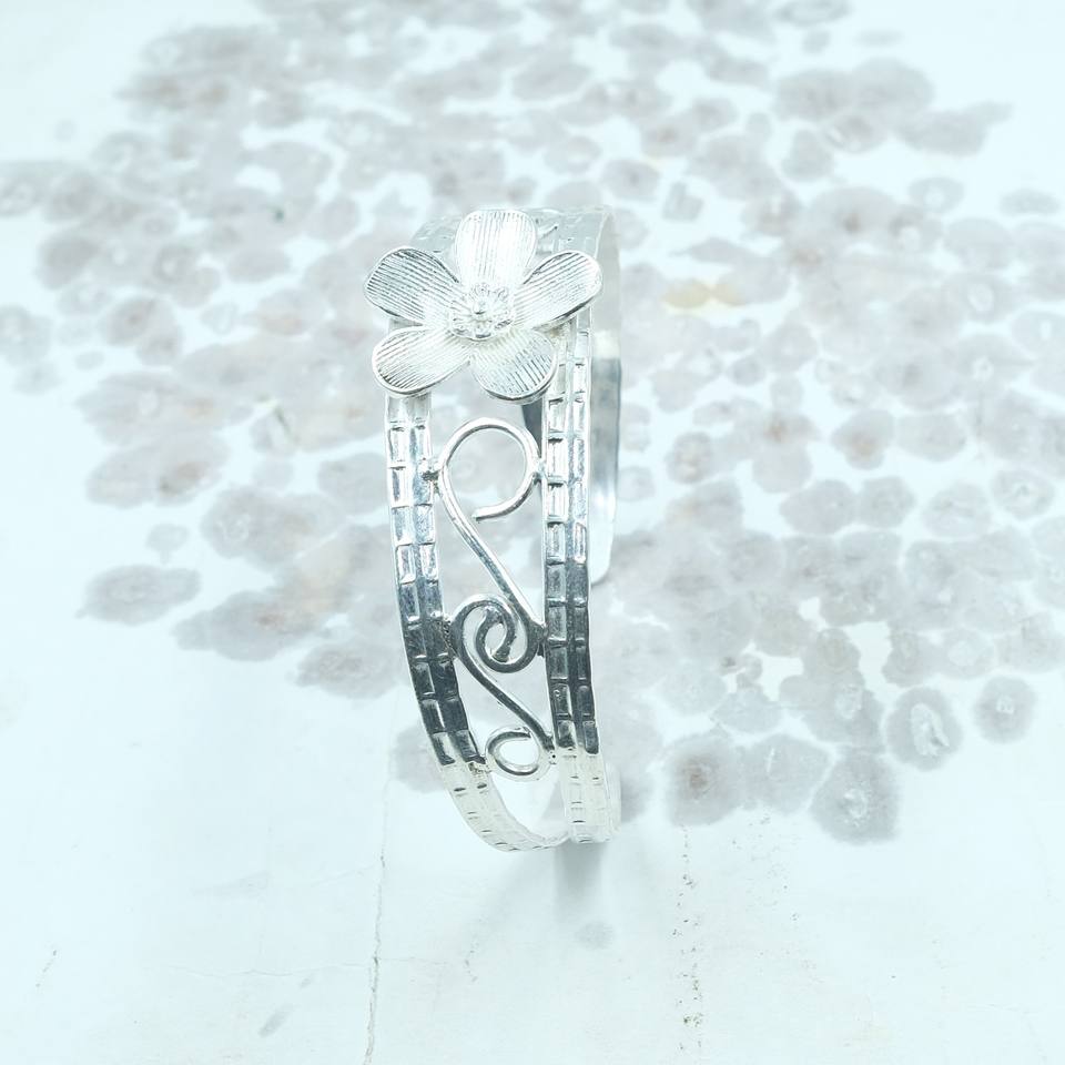 กำไลข้อมือเงินแท้ 925 ลายดอกไม้ งานแฮนด์เมด ปรับขนาดได้ ดีไซน์ดอกไม้แบบเปิด ของขวัญสำหรับผู้หญิง ของขวัญคริสต์มาส