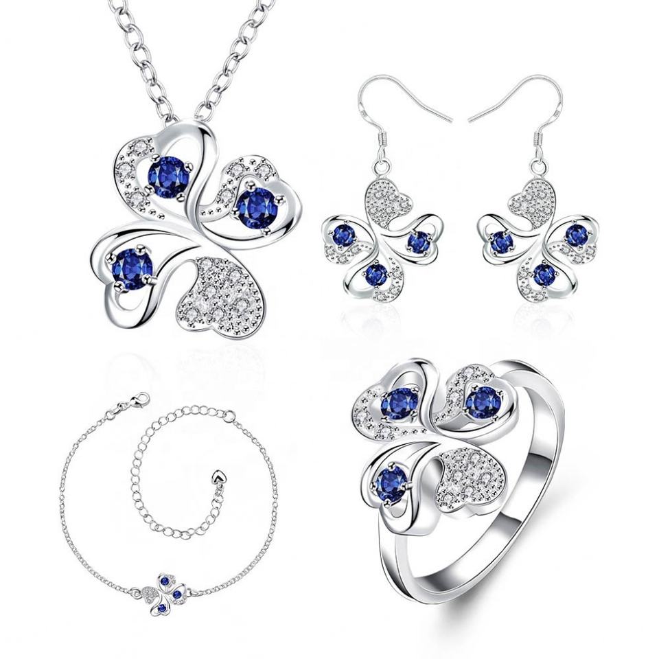 ชุดเครื่องประดับเงินแท้ 925 รูปทรงดอกไม้ ประดับเพชรคิวบิกเซอร์โคเนีย พร้อมแทนซาไนต์ สำหรับงานหมั้นและของขวัญวันครบรอบ
