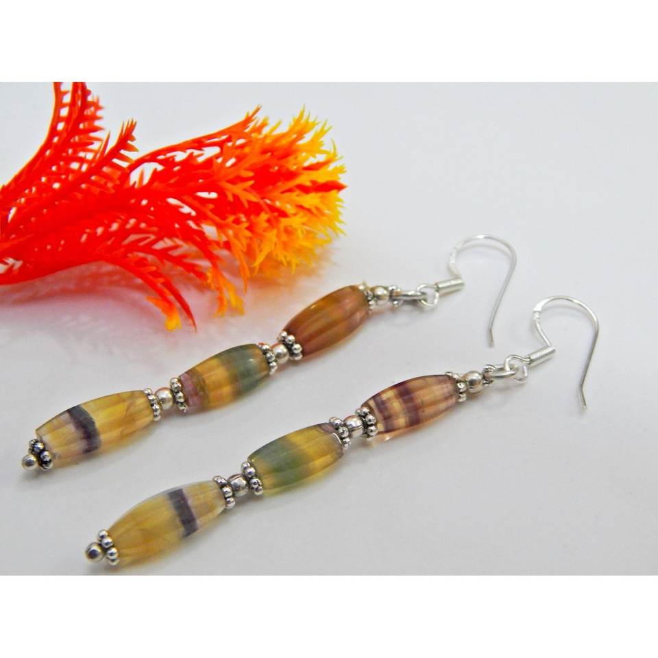 925 Sterling Silver Fluorite Beaded Earrings Everyday Gift Item Gemstone Jewelry for Her-Fashion E0051-GS