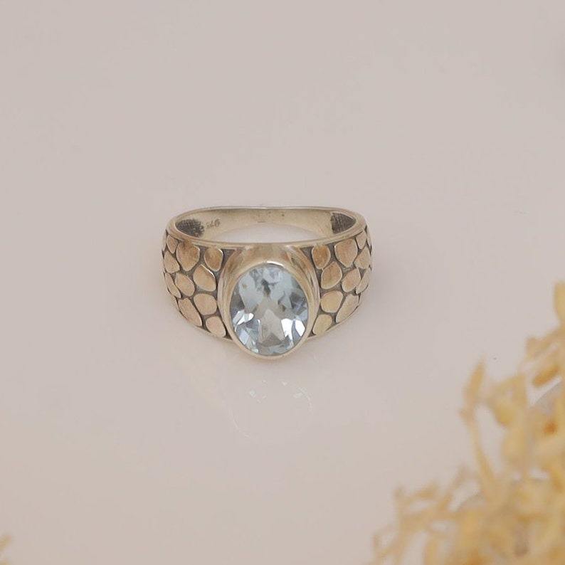 แหวนพลอยสปินเนอร์สีฟ้าทำด้วยมือ925เงินสเตอร์ลิงสำหรับงานแต่งงานสีฟ้าบุษราคัมสาว