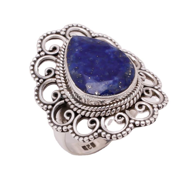 แหวนพลอยเงินสเตอร์ลิงทำด้วยมือเครื่องประดับเงินโบราณชั้นดีพร้อมใบรับรองจาก Lapis IGI สำหรับผู้ส่งออก925